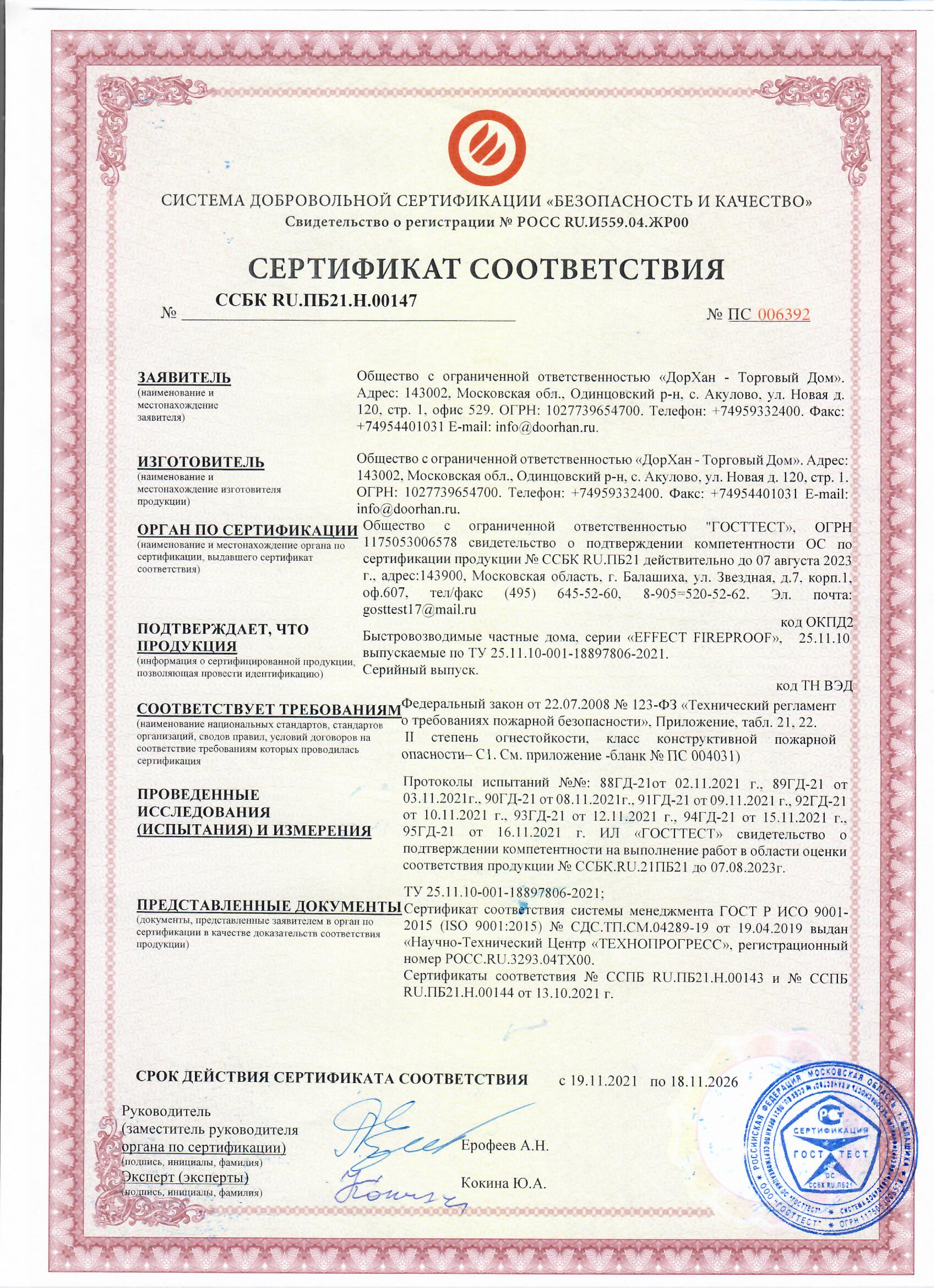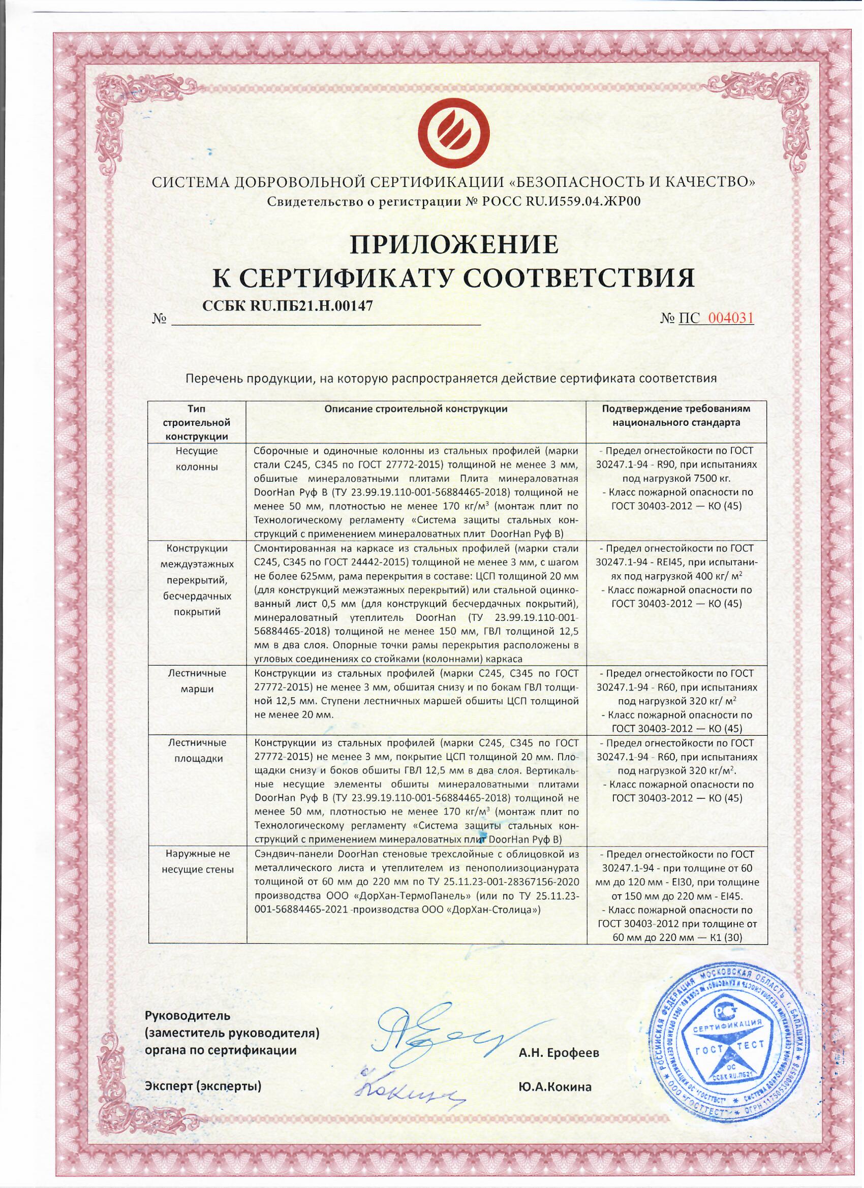 | Предел огнестойкости, мин | EI45 | Для сэндвич-панелей c PIR-наполнителем |